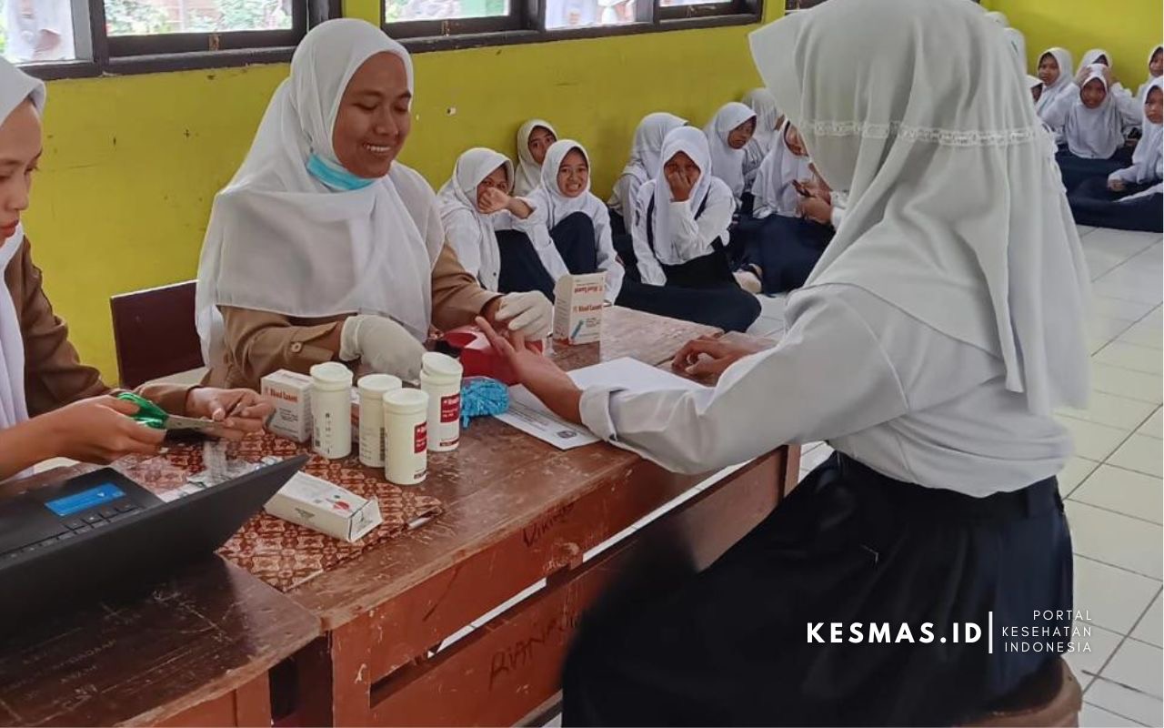 Selain itu, Ai Dini Swastika, A.md.Ak selaku petugas laboratorium Puskesmas Jatiwaras juga melakukan skrining Hb untuk mendeteksi dini anemia pada remaja putri dan skrining merokok untuk mendapatkan data awal perilaku merokok di lingkungan sekolah.