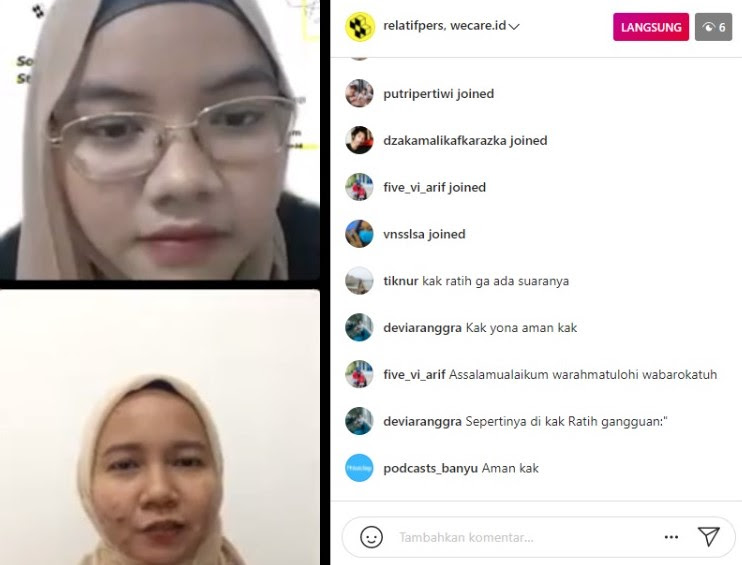 Jakarta, 19 September 2021– Relatif Perspektif bersama WeCare.id dan KESMAS.ID sebagai media partner mengadakan Bincang Perspektif dengan Ratih Winarti (Campaign Manager at WeCare.id) melalui live Instagram pada Minggu, 19 September 2021. Acara talkshow berlangsung satu jam pada pukul 19.00-20.00 WIB. Bincang Perspektif diadakan untuk meningkatkan pengetahuan dan pemahaman publik dalam merencanakan kampanye media sosial untuk komunitasnya masing-masing.