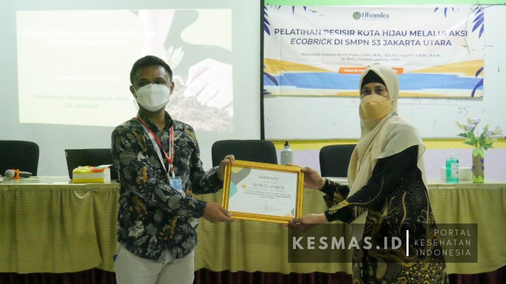 Kegiatan diawali dengan pengisian pre-test untuk kemudian dilanjutkan dengan pemaparan materi I terkait “Peran Remaja dalam Persoalan Lingkungan Hidup” dan materi II “Ecobrick” yang disampaikan oleh Dosen Kesehatan Lingkungan FIKes UHAMKA yaitu Awaluddin Hidayat Ramli Inaku, S.K.M., M.K.L. Setelah penyampaian materi, kegiatan selanjytnya yaitu sesi praktek Ecobrick. Pada sesi ini, siswa dan siswi diberi kesempatan untuk membuat dan mengkreasikan karya menggunakan metode Ecobrick dengan bahan-bahan yang telah disediakan seperti botol plastik bekas dan sampah plastik yang sudah dibersihkan sebelumnya.
