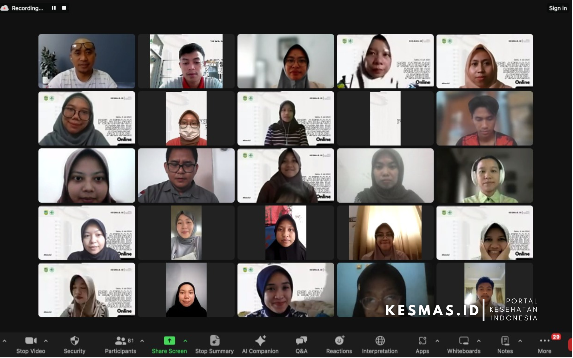 Keterampilan menulis sangat dibutuhkan oleh tenaga kesehatan untuk berbagi informasi seputar kesehatan. Hal ini karena pada era digital sebagian besar pertukaran informasi terjadi melalui teknologi digital. KESMAS.ID berhasil melaksanakan kegiatan pelatihan menulis artikel pada hari Sabtu 6 Juli 2024 secara online melalui zoom meeting dengan narasumber Kang Niwa yang sekaligus founder dari KESMAS.ID. Pelatihan menulis ini diikuti oleh 50 peserta dari berbagai daerah di Indonesia. Kegiatan pelatihan ini sekaligus membuka kegiatan magang batch 2 yang diselenggarakan oleh KESMAS.ID yang bekerja sama dengan Dinas Kesehatan Tasikmalaya.