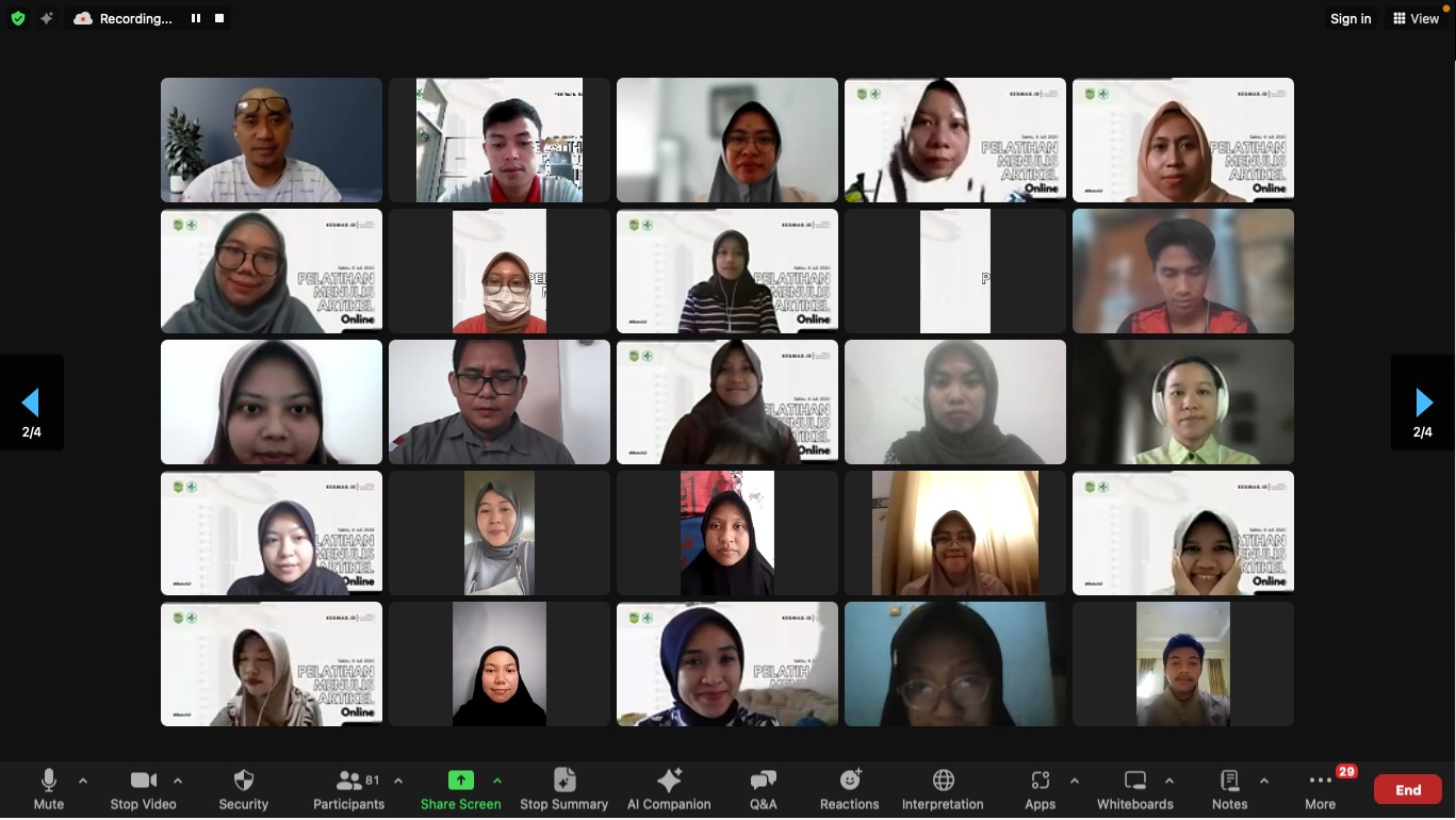 Skill menulis untuk nakes berguna sebagai edukasi publik, melalui konten edukatif, artikel, atau postingan media sosial. Bersama Kesmas,id dan Dinkes Kabupaten Tasikmalaya telah terselenggarakan pelatihan menulis dan magang selama 3 bulan. Pelatihan menulis secara daring diselenggarakan pada Sabtu, 6 Juli 2024, sedangkan magang mulai dari bulan Juli sampai September. Pelatihan ini diikuti oleh 50 peserta dari berbagai kalangan di seluruh Indonesia.