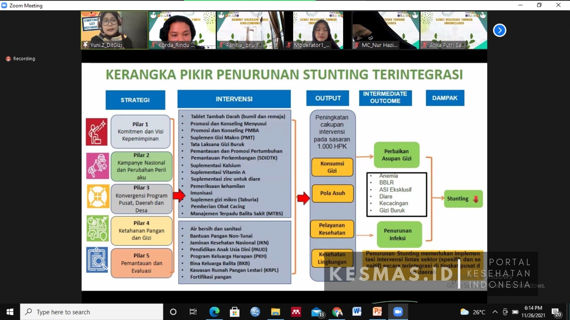 Kegiatan ini dilaksanakan secara online melalui virtual Zoom yang dihadiri oleh kurang lebih 150 peserta dengan Narasumber- Narasumber yang berpengalaman dan berkompeten yaitu: Ibu Yuni Zahraini SKM, MKM dari Direktorat Gizi Masyarakat Kementrian Kesehatan RI dengan Sub materi yang dibawakan adalah “Kebijakan Program Gizi Dalam Upaya Penurunan Stunting Di Masa Pandemi Covid-19″.