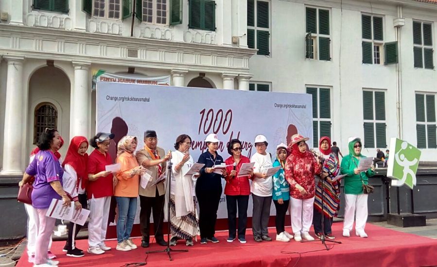 Jakarta, 21 April 2018 – Dalam rangka Hari Kartini, sebanyak 1000 perempuan Indonesia dari berbagai kelompok dan organisasi bergabung di Kota Tua, Jakarta, untuk mendeklarasikan diri mendukung gerakan #RokokHarusMahal. Bersama-sama, mereka menulis surat untuk keluarga tercinta agar berhenti merokok dan menjaga kesehatan tubuh maupun “kesehatan” ekonomi keluarga, serta kepada pemerintah agar segera menaikkan harga rokok setinggi-tingginya untuk menyelamatkan keluarga mereka.