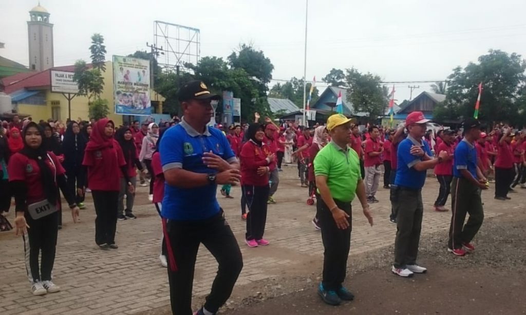Lapangan halaman kantor Kecamatan Sungai Tabukan dipenuhi peserta senam bersama pada Sabtu, 19 Januari 2019.